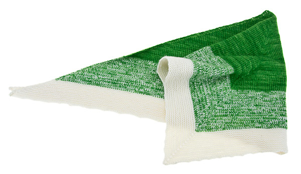 Zuvor habe ich schon ein Tuch mit Lace doppelfädig gemacht. Den Spring Kerchief von Sachiko Uemura. Dieses Tuch wird aus zwei verschiedenfarbigen Strängen gefertigt und gibt durch die zweifädige Verarbeitung einen tollen Farbeffekt. Ich habe mich für die Farben 063 Natural und 004 Saphire Green entschieden.