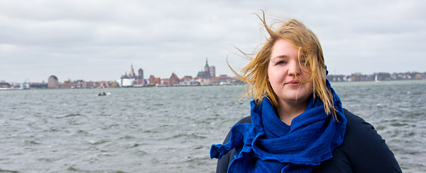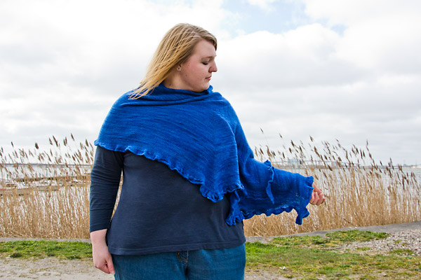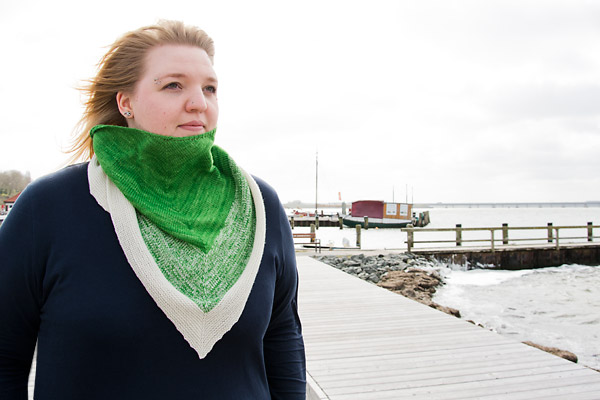 Wir hatten übrigens viel Spaß beim Fototermin, dank „orkanartiger Böen“ am Strandbad von Altefähr. Oder wie wir im Norden sagen: „’N büschn Wind.“ Was aber zur Folge hatte, dass sich das Schießen der Bilder zur kleinen Herausforderung entwickelte. Kaum hatte man das Tuch wieder einigermaßen gerichtet, wehten mir die Haare um die Ohren und andersherum, das leichte Lüftchen drückte einem die Tränen in die Augen und kurzzeitig wünschte ich mir Carolins Eskimo-Set gegen die Frostbeulen her.